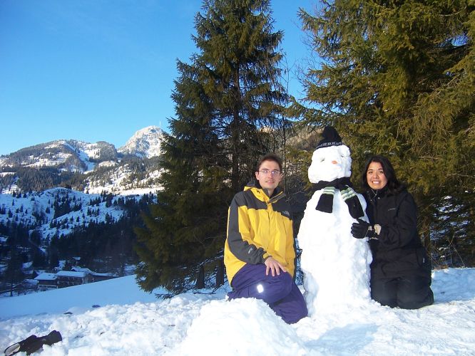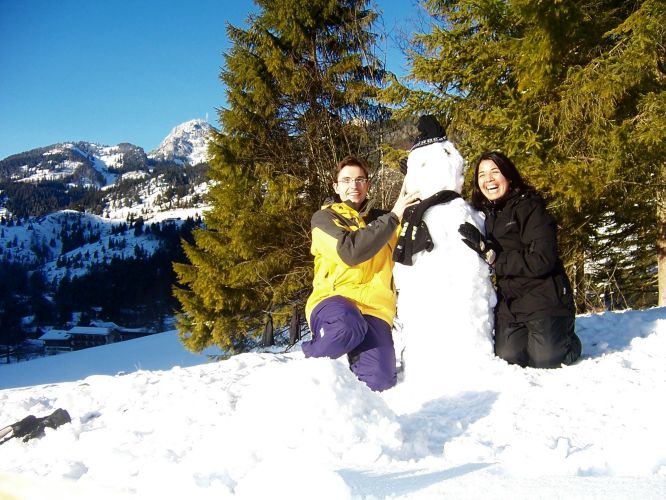 Und da der Schnee heute besser pappte und es beim letzten Mal so schön war, bauten wir noch einen weiteren Schneemann.