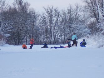 While Elmar was in the meeting in the Mayr-Wirt hotel, Leticia made a walk through the park close to the appartment. Here children were enjoying the snow.