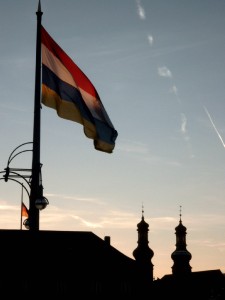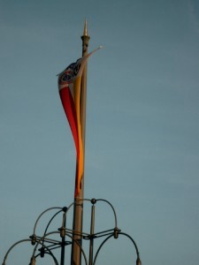 Red-white-blue-yellow are the colors of Carneval. This flag of the local Carnevals Club Mainz Kastel is on the other side of the Rhine river where I live. |