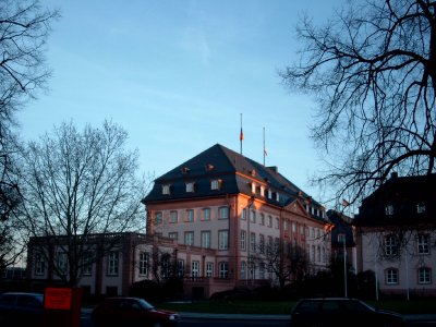 We have splendid blue sky, wonderful late afternoon light on the parliament of Rheinland Pfalz. It is about 17:00 and temperature are in the range of 5-6°C. |