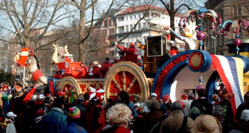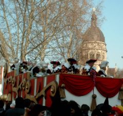 Die Mainzer Hofsänger I will finish with a very famous choir from Mainz. You see them on the wagon below which is always one of the last and largest in the parade. Die Mainzer Hofsänger (the Mainz court singers) form always the end of the big TV show. They are a rather good choir and they have also an own website (in German) you can have a look on: