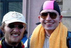One more report from the Rosenmontags-gang. Here I am with my colleague Philippe. He is from Flensburg, one of the most Northern towns in Germany. And they do not have carneval.