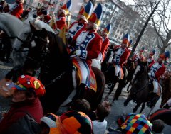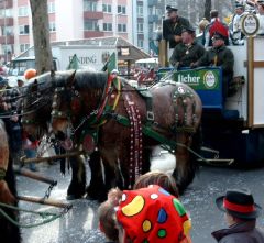 Finally, carneval would not be carneval without the guards. Germany as well as other parts of Europe have from the middle ages a tradition in military uniforms and guards. The tall soldiers for example of Friedrich the Great are very well known. Carneval was always ridiculing the guards and with them the authorities. The guards where sitting on a funny wooden horse like down right, the guards where dancing, they had flowers in their guns and some of the dances (for example if two men were rubbing their bottoms to each other) were really ridiculous. But on the other hand, people in the guards where nevertheless a bit proud of the nice uniform. And some of them have really wonderful horses ...