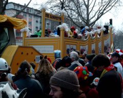 Well ... there is a song, a famous one: "Ole ole fiesta, fiesta here at the Rhine, can be as nice ... as nice ... as at Rio Grande." (very free translation - it is German Portuguese or Spanish mixture). If thinking about Carneval the world looks to Brazil, to Rio and Bahia, thinking about Samba, hot rythm, hot costumes and hot nights. The problem here is, it is cold, usually between -3 and 10°C, depending on the weather. Nevertheless there are few tough guys ignoring this and running round naked the full four hours of the parade.