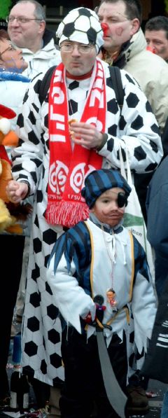 I came with my friend Matthias and his son Michael on the right. Matthias had a socker-ball costume. Since Mainz 05 made it to the first league, it became very popular here in town.