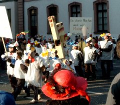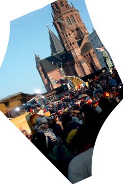 The parade of the schools and of the 'Schwellkoepp' (hm ... difficult to translate .. something like swollen heads ...) ended in Mainz near the Dom.