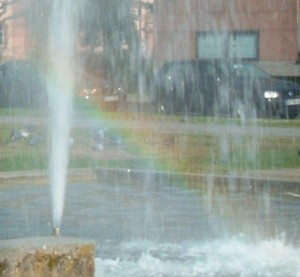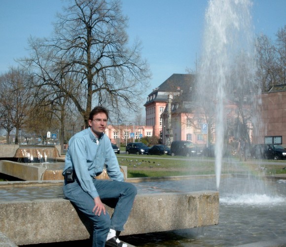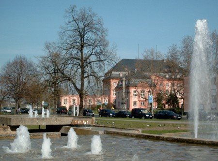 On the other Rhine side Mainz 'downtown' begins. For the first time this year I saw that they switched on the fountain next to the parliament, which is located in the old castle of Mainz.