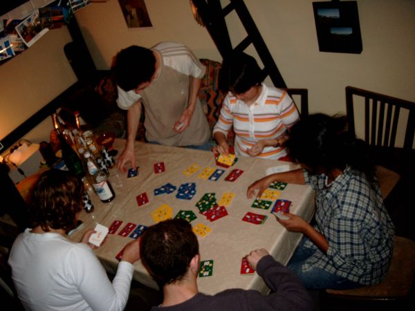 On April 13th I invited friends and colleagues for a game evening. We had some nice snacks of little breads warmed up in the oven with cheese and ham, and then we started playing Ligretto.