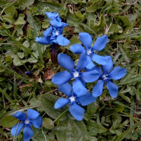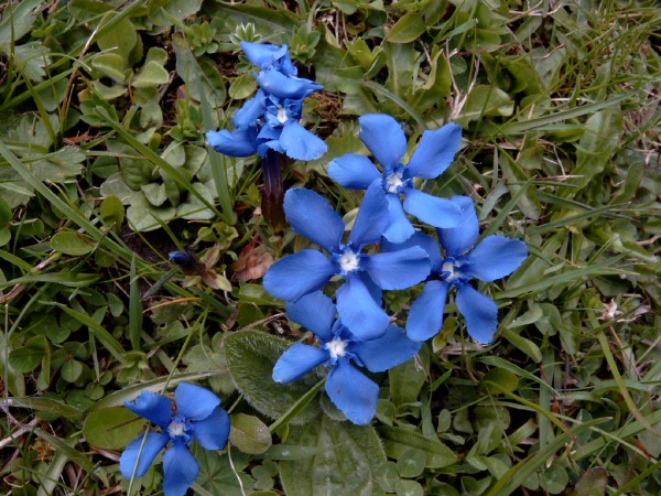 On the right however you see a typical mountain flower you find in various smaller and larger species in the whole Alps. It is gentian [lat.: gentiana].
