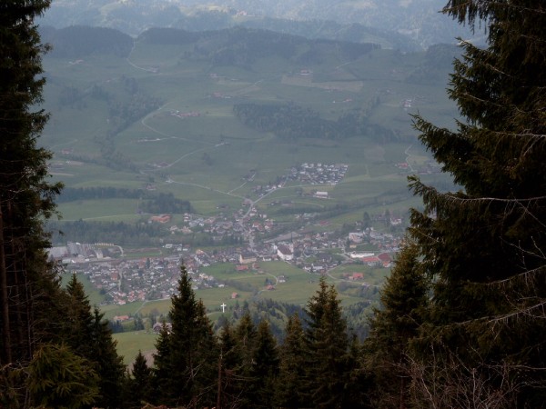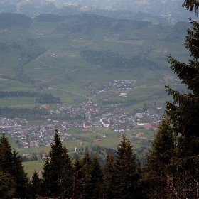 The second part of our hiking became finally a bit adventerous. Although it was clear that we wanted to go down to the little town Schüpfheim and go back from there with the train, it turned out that to find the way down was not so easy. We had only a very rough map printed out from the Internet, and the way we planned to go was not marked. The marked way to Schüpfheim however went always up instead of down. Nevertheless we stayed on it, since it was more secure to follow the signs than to get lost in side valleys. In the end we had to climb the top a mountain from where you could look 700 meters down to the villlage (photo on the left). So our trip became a bit harder than expected and we were rather tired afterwards. But it was a very nice day. |